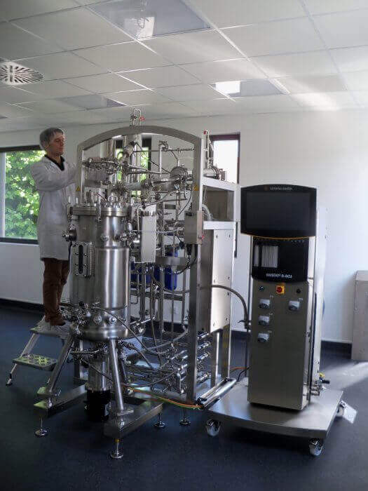 • Zone de culture cellulaire (Upstream) : PSM, incubateur, bioréacteurs de 2 L à 50 L, réutilisables ou à usage unique.