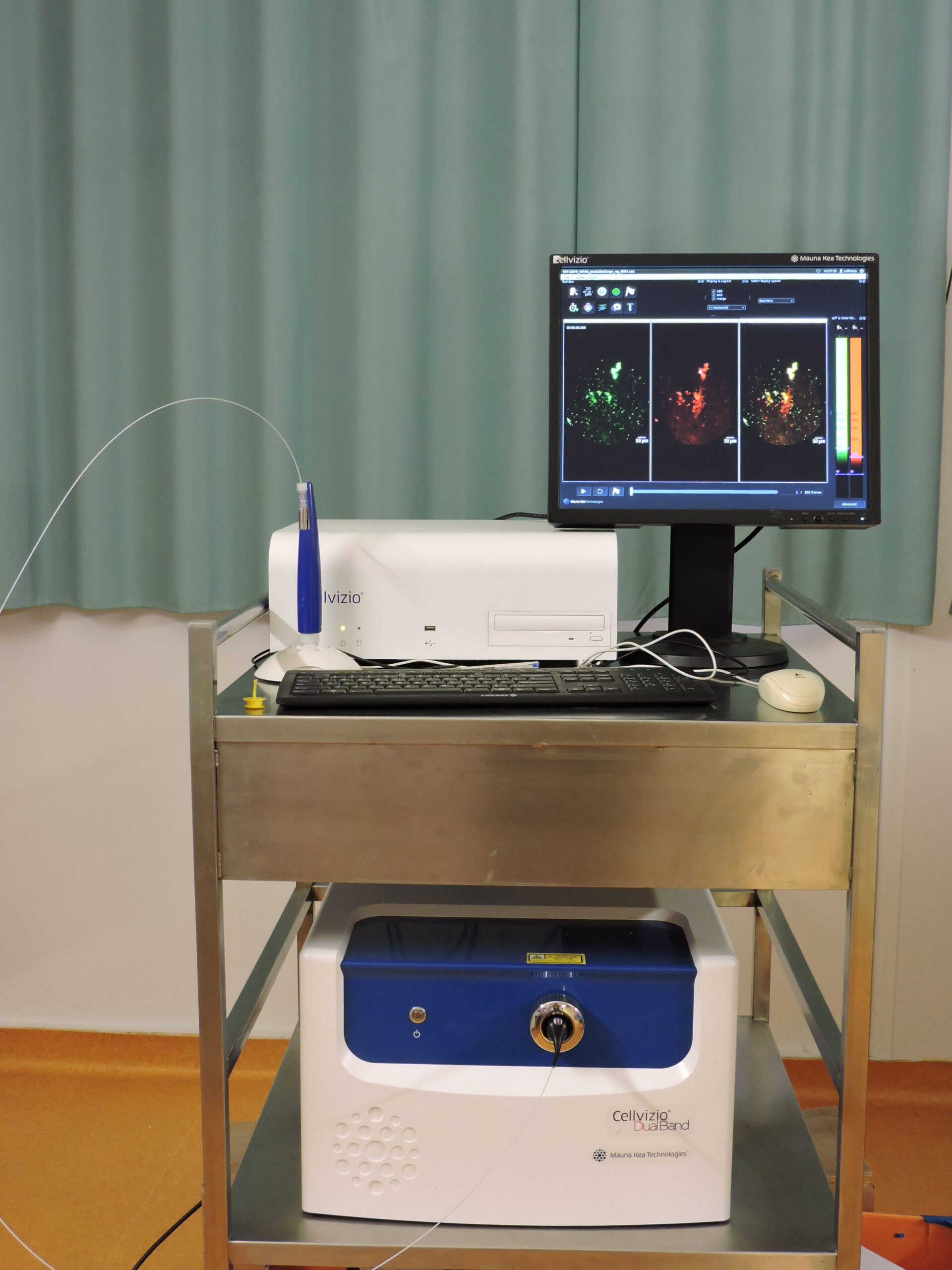 Le CellVizio est un endomicroscope confocal de fluorescence permettant d’imager tout tissu en temps réel au niveau cellulaire, par simple contact avec l’organe et après administration d’un ou de plusieurs marqueurs fluorescents.